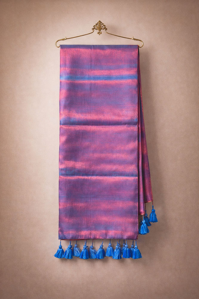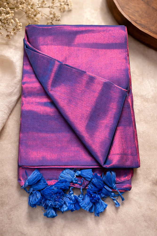 Graceful and lightweight, this Tissue Mul Cotton Saree blends the softness of mul cotton with a subtle tissue sheen. The fabric drapes beautifully, offering comfort with a gentle shimmer that adds elegance to everyday styling. Finished with tassel detailing for a charming touch.